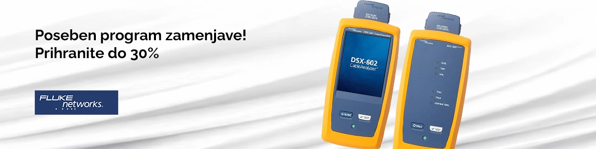 - Kabelski analizator Fluke Networks DSX-602 (500 MHz) po promocijski ceni 6.341,00 EUR + DDV (redna cena 9.059,00 EUR + DDV).