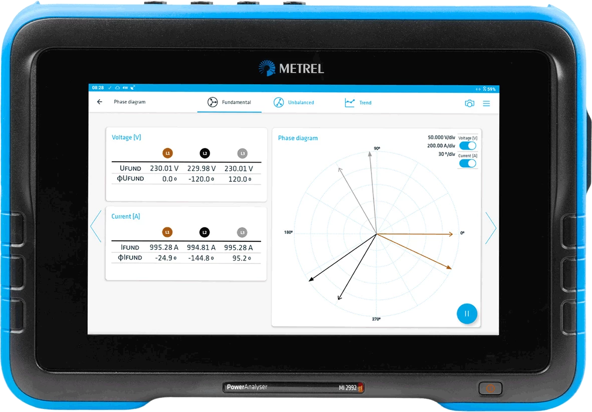 - Intuitivni čarovnik po korakih omogoča hitro in enostavno nastavitev meritev ter takojšnje zaznavanje parametrov kakovosti električne energije