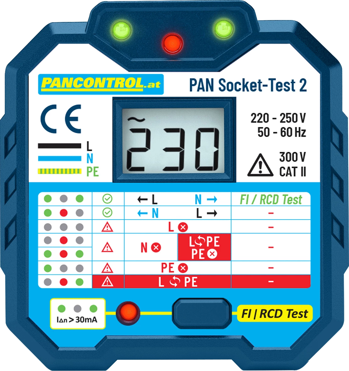- Zelene in rdeče LED-diode prikazujejo pravilno ožičenje vtičnice