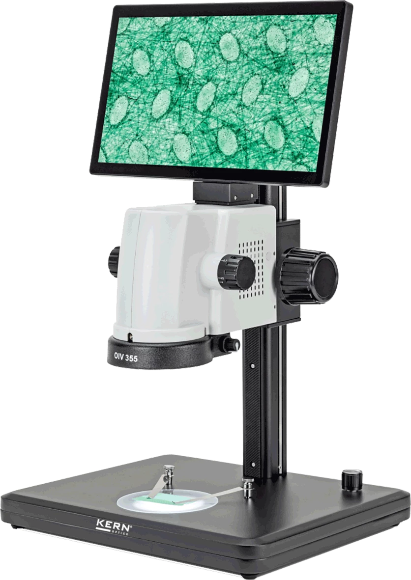 - KERN OIV 355 je video mikroskop, ki je bil zasnovan za optimizacijo digitalne stereo mikroskopije. Dobro zasnovana, celovita rešitev z aksialno optično enoto omogoča takojšen in preprost prikaz vaših vzorcev na zaslonu