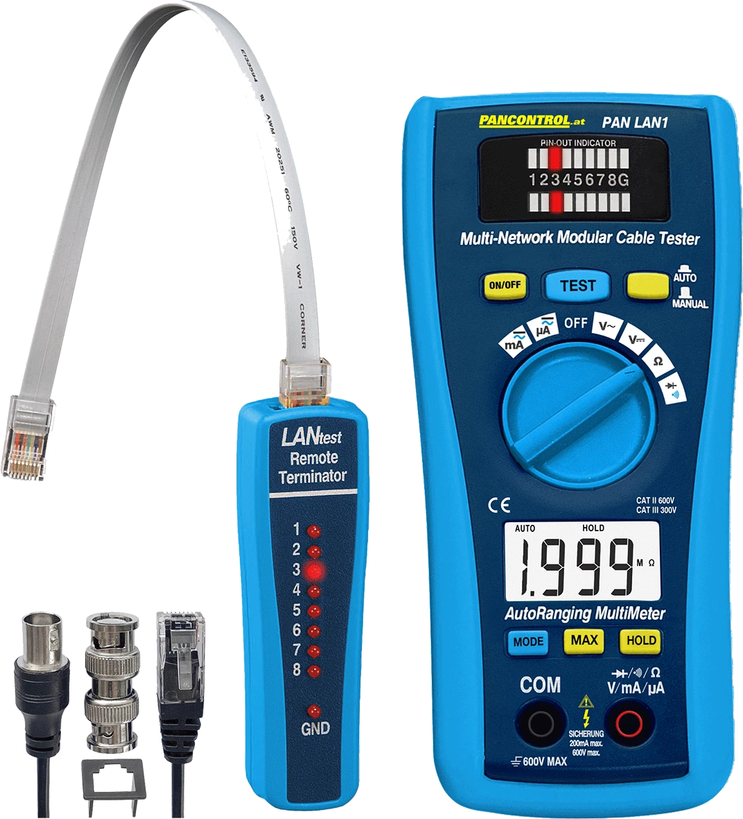 - Preizkus LAN-kablov za kontinuiteto, prekinitev, kratki stik in zamenjane vodnike (RJ45, RJ11, BNC)
