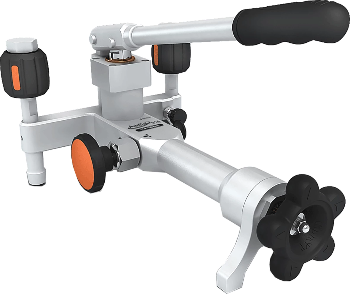 - Enostavna za uporabo: s pomočjo ročice generirate tlak do želene vrednosti in s preciznim ventilom določite točno vrednost