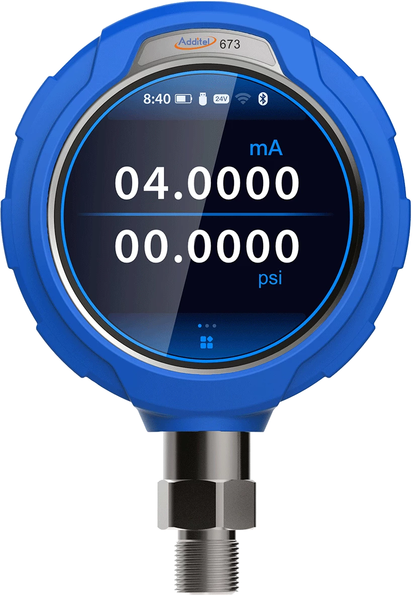 ADT673 je prenosni kalibrator, ki meri tlak z vgrajenim tlačnim senzorjem in meri analogne izhodne signale 4-20 mA in 0-10 V DC pretvornikov. Kalibrator ima tudi napajanje tokovne zanke 24 V DC.