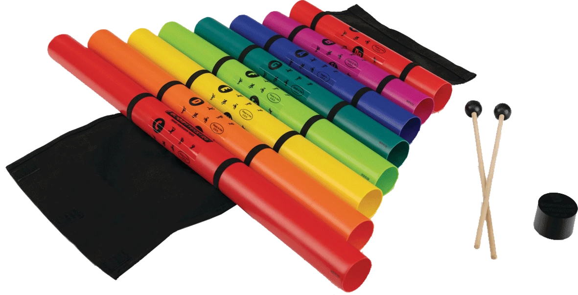 Cevi je mogoče namestiti v priloženi držalo cevi in jih udariti z dvema priloženima kladivoma, da jih uporabimo kot ksilofon, kar zagotavlja zanimiv, glasbeni kontekst za fiziko valov. Držalo za cevi se podvoji kot organizator za shranjevanje. Idealno za srednje šole do univerzitetne akustike in teme valov.