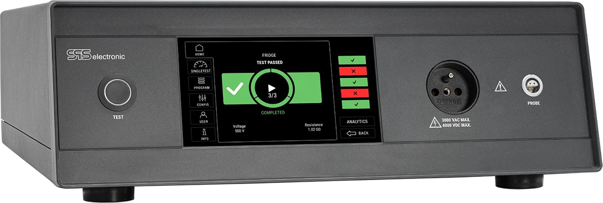 Varnostni testerji združujejo do 7 vrst testiranj v eni kompaktni napravi – od visokonapetostnega testiranja, testiranja izolacije in testiranja ozemljitvenih povezav do funkcionalnega testiranja. Naprave za električno varnostno testiranje omogočajo testrianje v skladu z vsemi običajnimi standardi (VDE, EN, IEC itd.).
